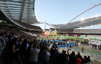Η είσοδος ΑΕΚ και ΠΑΟΚ στον αγωνιστικό χώρο για τον τελικό Κυπέλλου