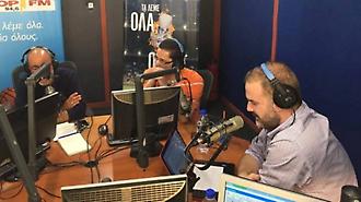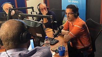 Ο Θάνος Μικρούτσικος και ο Μιλτιάδης Πασχαλίδης στο studio ΣΠΟΡ-FM 94.6